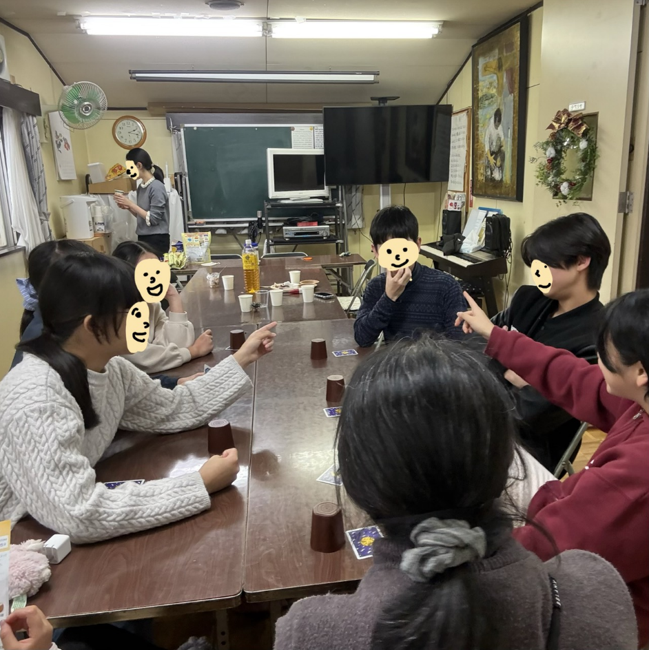 2025年12月 ジュニアクリスマス祝会 初期カテゴリー 2025.12.22 12月21日にジュニアエクレアのクリスマス祝会が開催されました。クリスマスをイメージした料理やスイーツを味わい、その後はみんなでゲームをして楽しい時間を過ごしました。